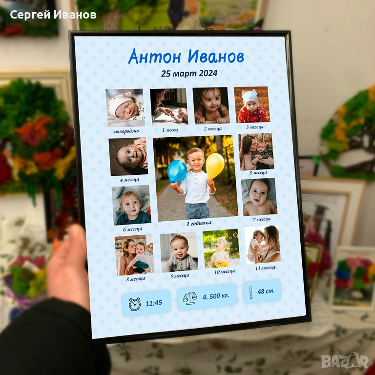 Създавам персонализиран постер с 13 снимки от първата година на вашето бебе – красив спомен, който остава завинаги.