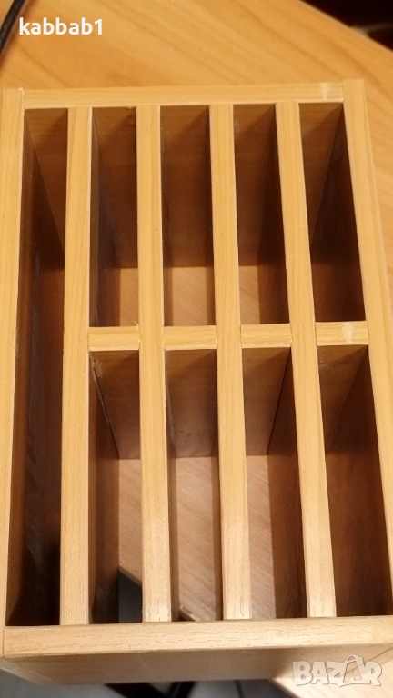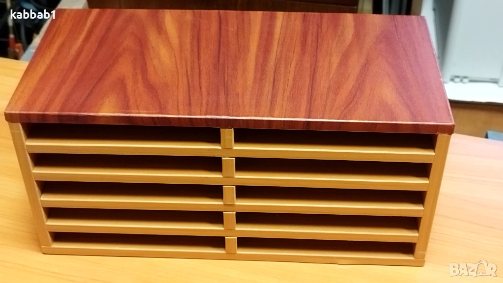 1) Органаизер с размер 34x16x16 cm , има две редици по 5 отделения или общо 10 отделения, като ширината на рафтовете е 15,5см. Цена на този Органаизер е 23€