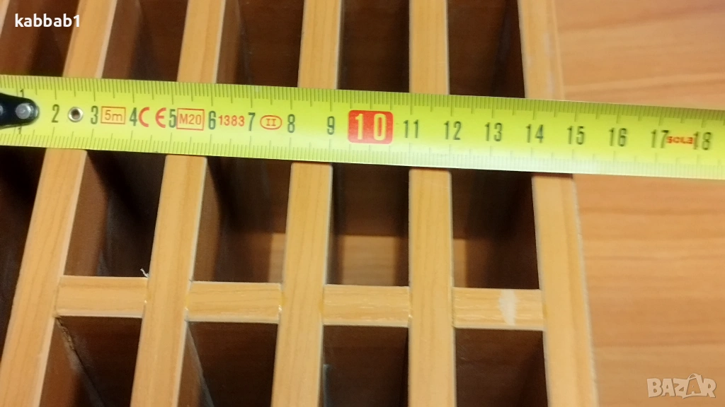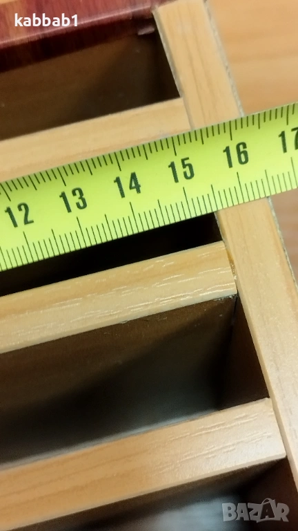 2) Органаизер с размер 24x16x16 cm , има две редици по 4 отделения ширината на рафтовете е 10,5см и едно по голямо над тях ширина 22см или общо 9 отделения . Цена на този Органаизер е 17€