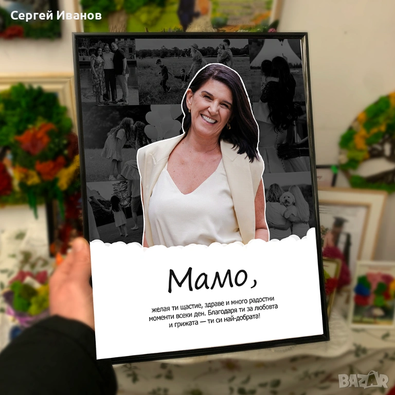 Този тип колаж е подходящ като подарък за мама, татко, баба, дядо или любим човек. Подходящ е и за декорация на дома.