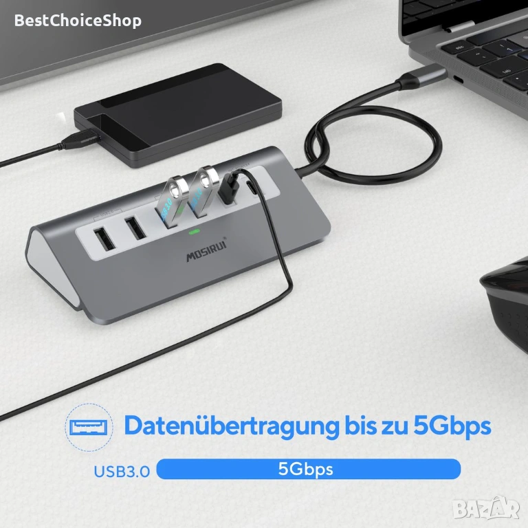- Конструкция от първокласна алуминиева сплав: Изработен от първокласна алуминиева сплав, този USB хъб за лаптоп предлага превъзходно разсейване на топлината, поддържайки температури под 45°C при продължителна употреба за стабилна работа. Неговият plug-and-play дизайн не изисква драйвери, което го прави идеалното компактно и преносимо решение за разширение.