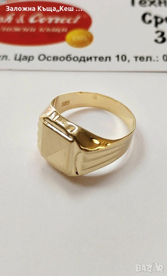 Златен мъжки пръстен 14К.Тегло 3.08 гр.Размер 62.Цена 250 €. → Обява 54154840