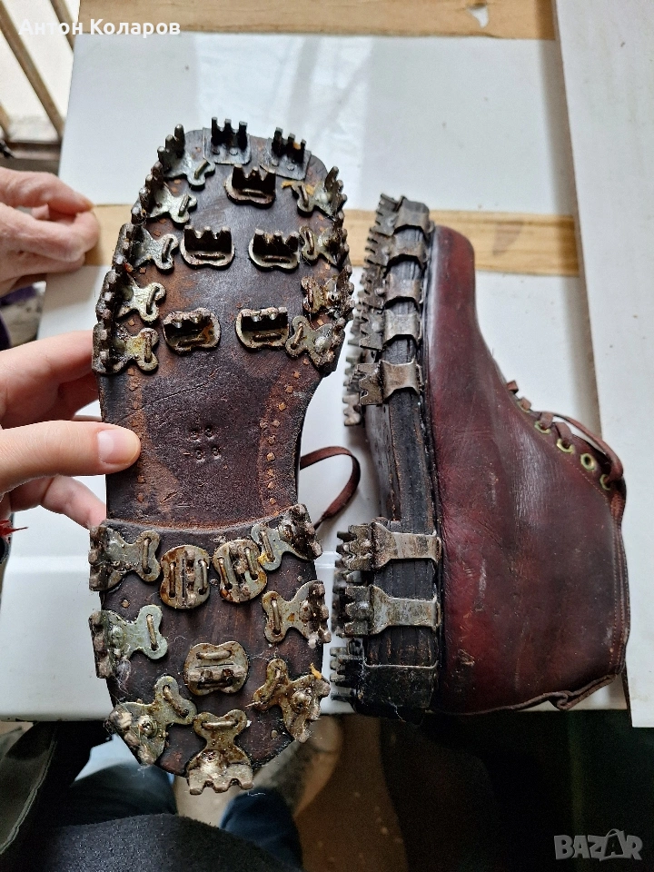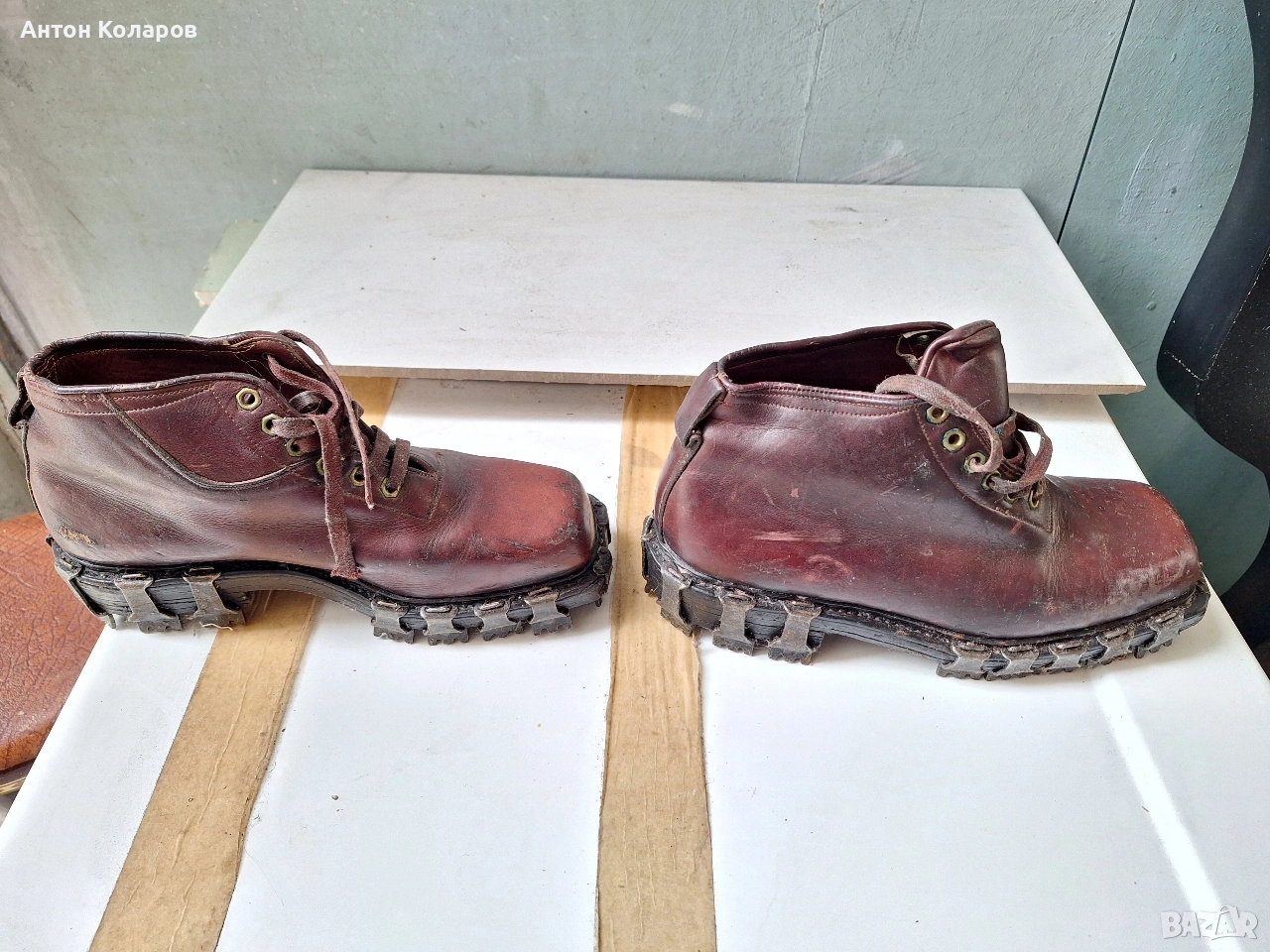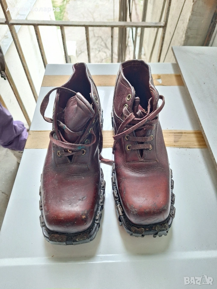 Кожени обувки за преходи, котки за сняг и лед. Номер 38