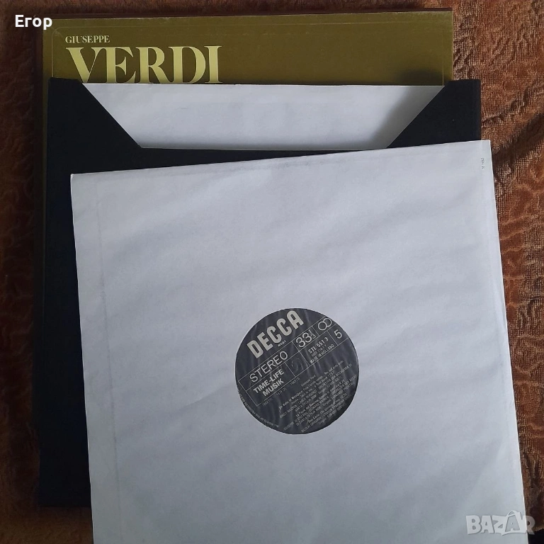* Giuseppe Verdi — Grosse Meister der Musik (VG+, плочите не са прослушвани и измити; има драскотина в началото на първата страна и някои леки забележки по някои други страни/VG++) — 10 евро за 4-те плочи