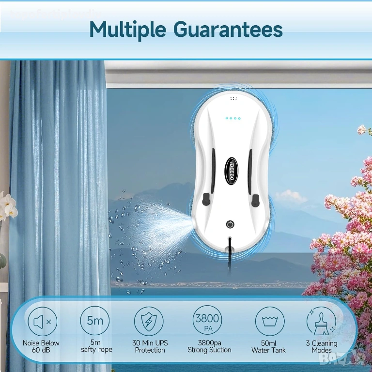 Робот за почистване на прозорци iDEEBO C200 Window Cleaning Robot,Гаранция
