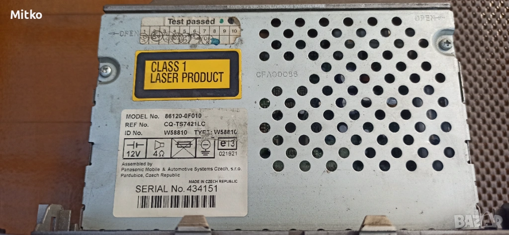Продавам напълно функциониращо радио за Тойота Корола Версо модели от 2004г. до 2009г. Радиото е без никакви проблеми като повечето предлагани, като спиране на звука, губене на радио и др. CD то също работи без забележка. Може да се тества при мен и да го монтирам като бонус на автомобила. Също така предлагам качествен ремонт на вашето радио което, прекъсва, пукат колоните, губи осветлението на дисплея и др. такива симптоми. Единствено не трябва да са му правени опити за ремонт преди това. Отговарям на въпроси на посочения телефон.