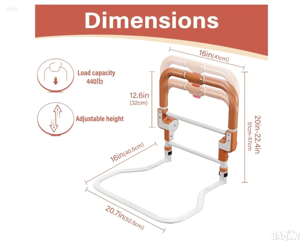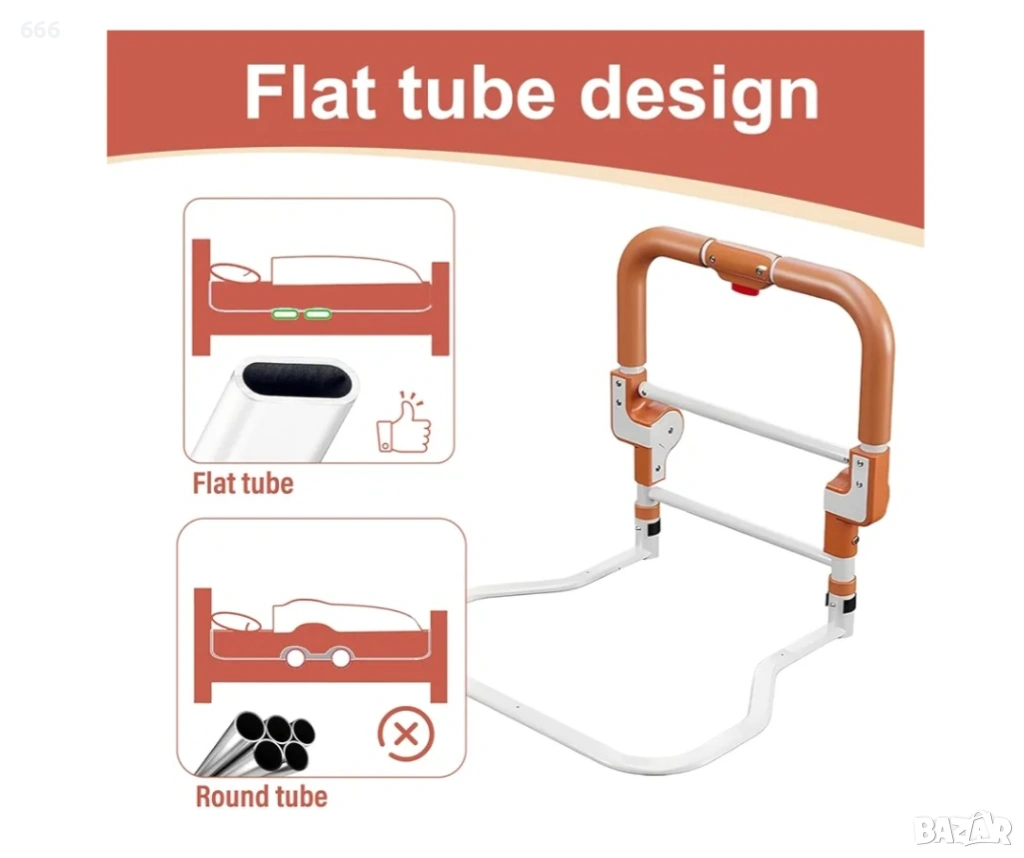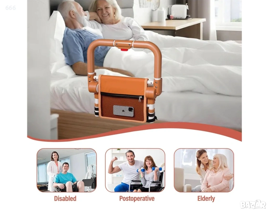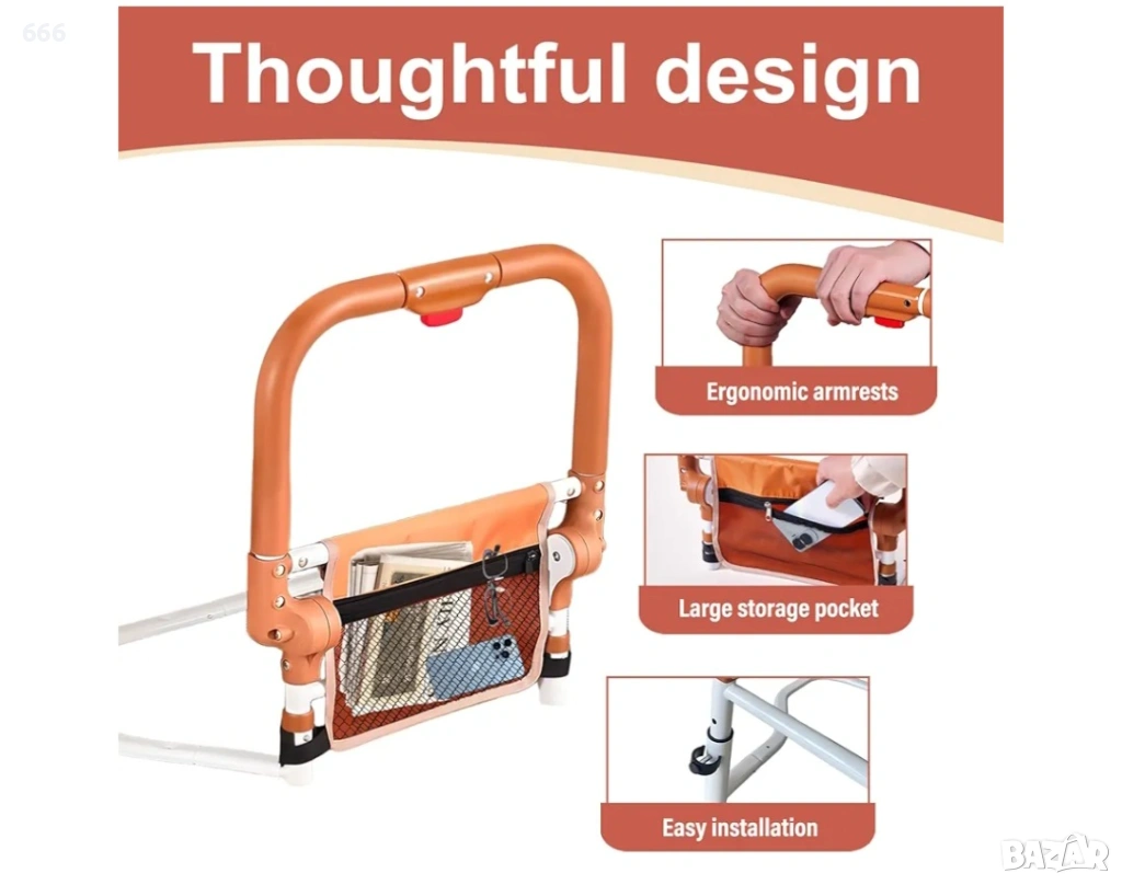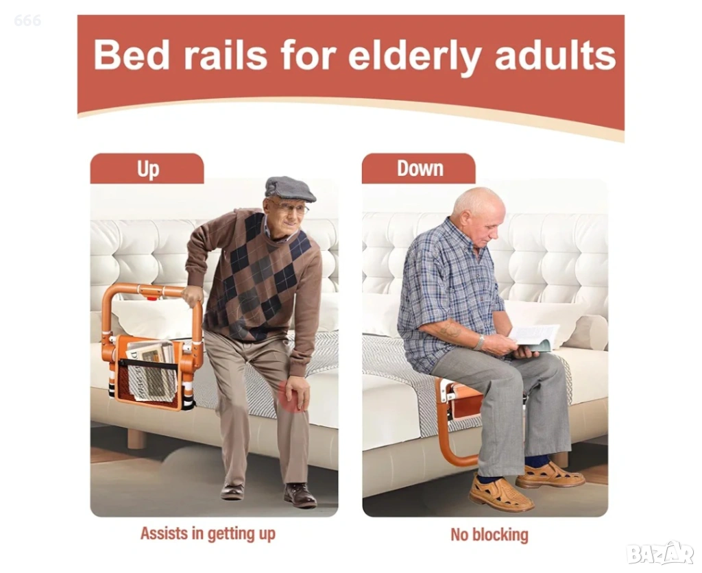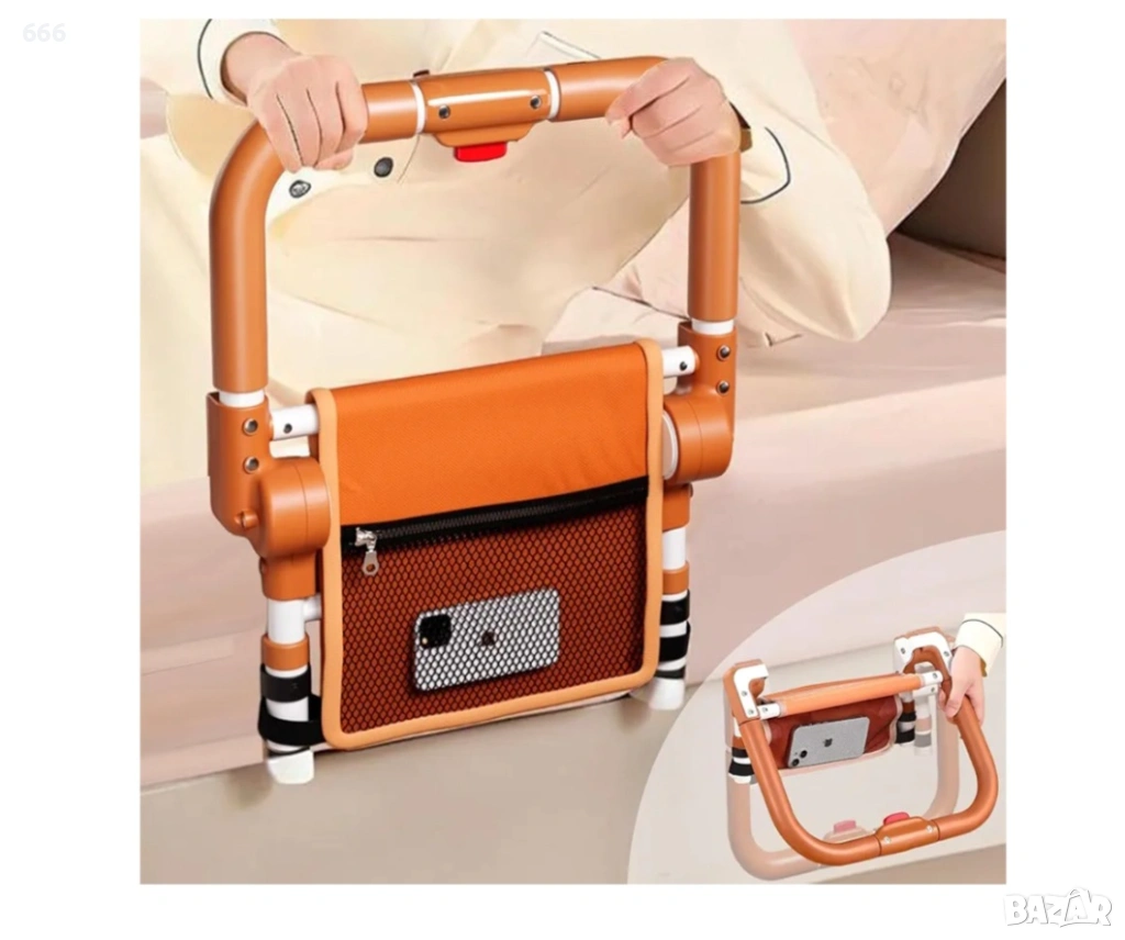 【Сгъваем предпазител за легло】Този иновативен предпазител за легло за възрастни хора осигурява безопасно влизане и излизане. Удобният му механизъм за сгъване с бутон го прави изключително лесен за употреба: той ви поддържа, когато е разгънат, и улеснява ставането от леглото, а заоблените ъгли осигуряват допълнителна защита.