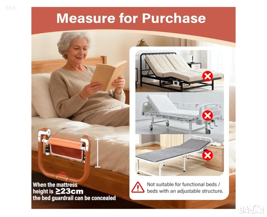 【Подходящи видове легла】Нашите предпазни решетки за легла не са подходящи за функционални легла / легла с регулируема конструкция, като сгъваеми легла, разтегателни дивани, електрически легла или болнични легла. Съвместима дебелина на матрака: 7,9–13 инча. Ако желаете предпазната решетка да е напълно скрита, когато е сгъната, препоръчваме дебелина на матрака ≥8,7 инча.