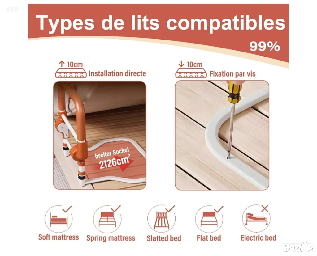 【Издръжлив и универсален】Изработен от здрава неръждаема стомана (товароносимост 200 кг), този предпазител за легло може да се използва като безопасно устройство за спиране на падане, удобна облегалка или стабилна опора за стоене. Лесен е за инсталиране и може да се използва веднага, което осигурява по-голяма безопасност в ежедневието.