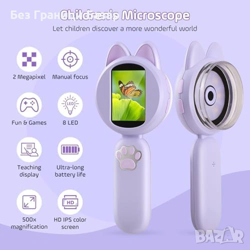 Нов Портативен цифров микроскоп 500X USB 2MP с LED светлини за деца играчка