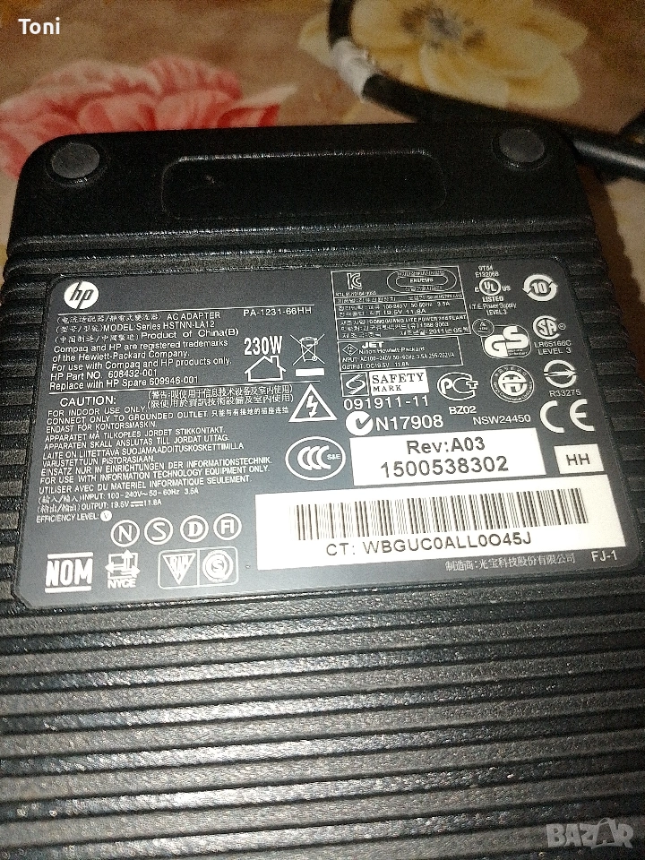 захранващ адаптер за лаптоп HP HSTNN-LA12 230W зарядно hp, снимка 1 - Части за лаптопи - 54155474 захранващ адаптер за лаптоп HP HSTNN-LA12 230W зарядно hp, снимка 2 - Части за лаптопи - 54155474 1/2