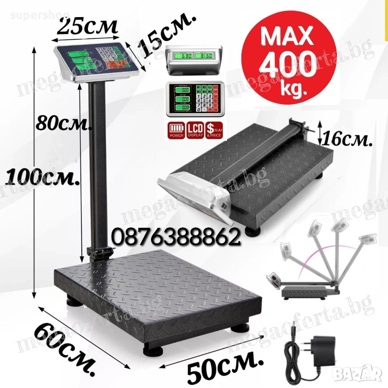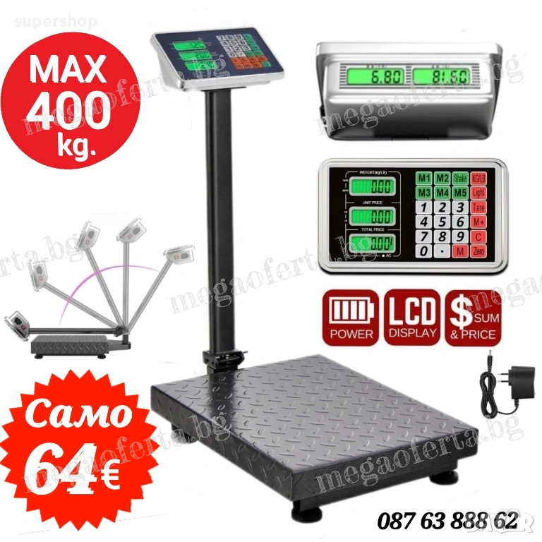 400кг. и прецизност до 50гр., ценообразуване, с вградена батерия и