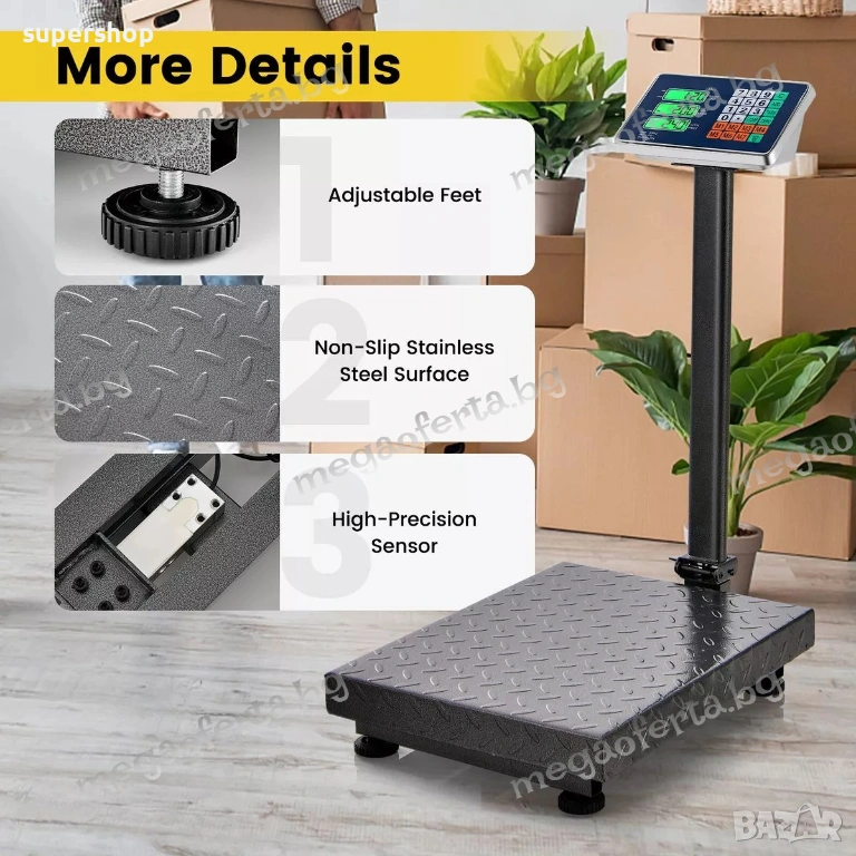 Електронен Кантар до 400кг с Голяма Рифелова Платформа и Батерия