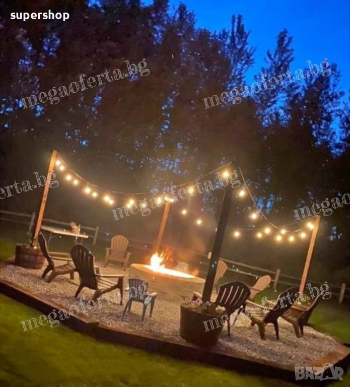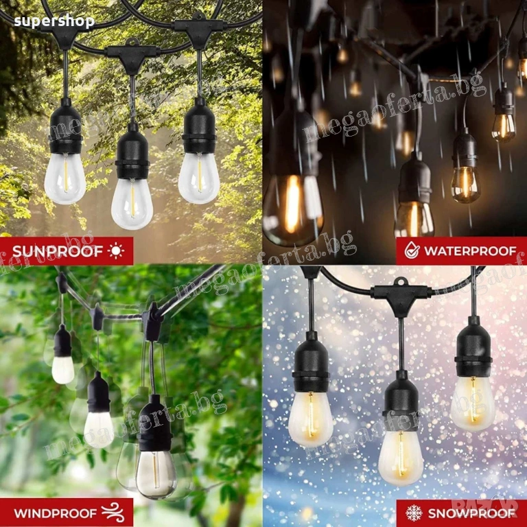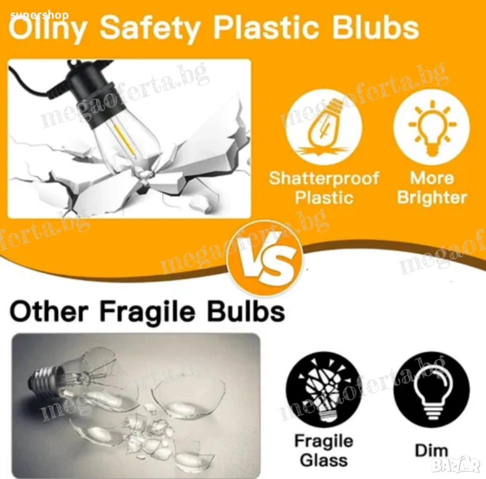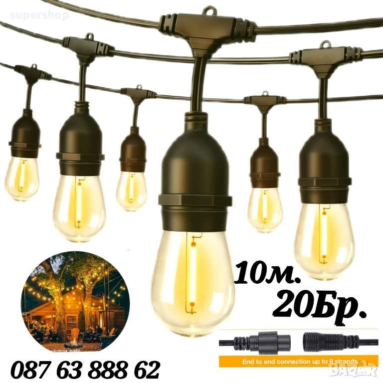 Светлинна Верига 10м. с 20Бр. Външни Нечупливи Лед Крушки за Декорация
