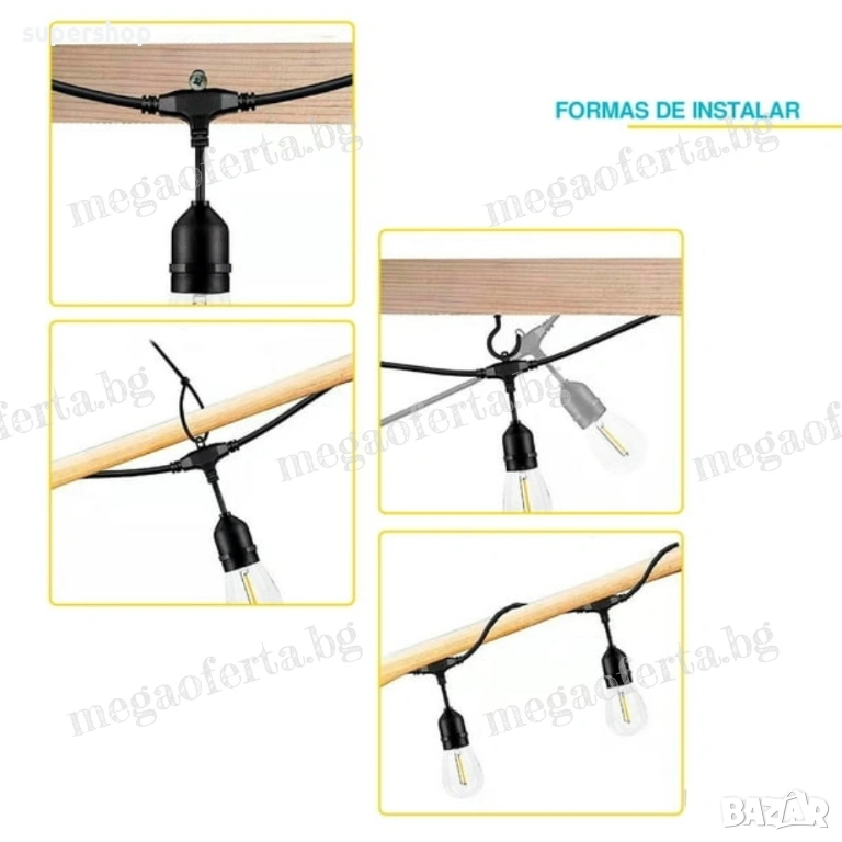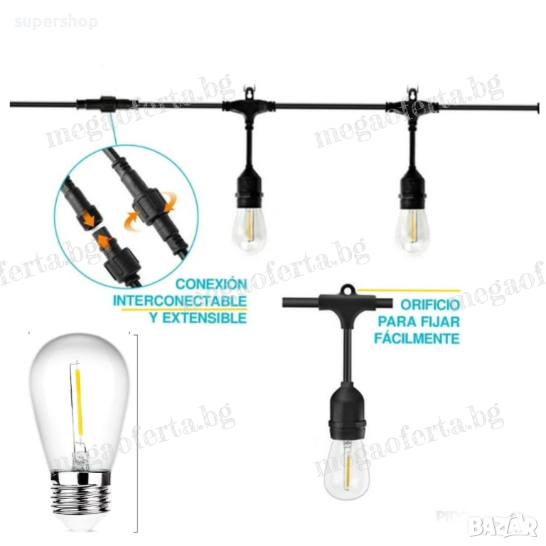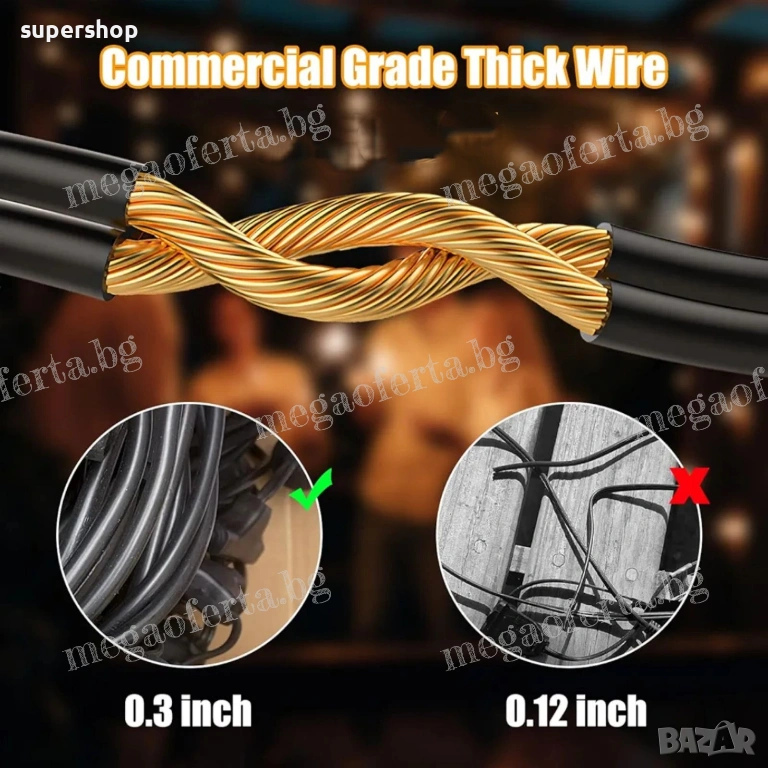 гирлянд от парти лампички нанизани през 50см. на дебел и здрав кабел с