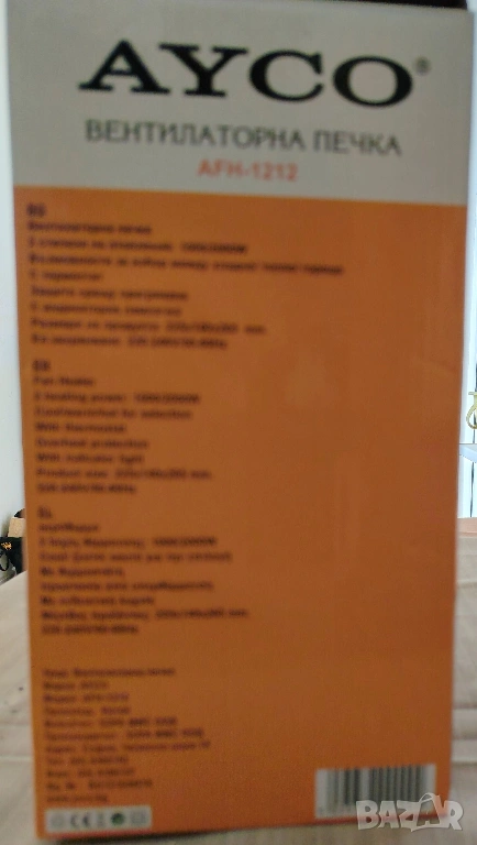 размери от 206x120x245мм, Вентилаторна печка Ayco AFH-1212 е лесна за преместване