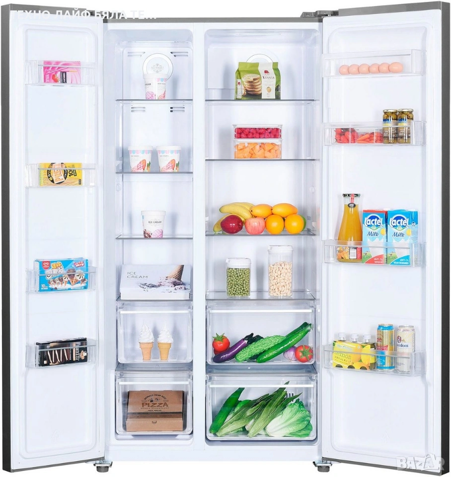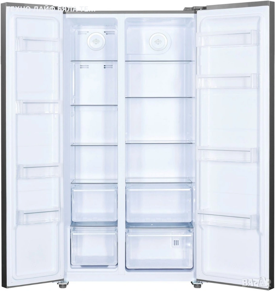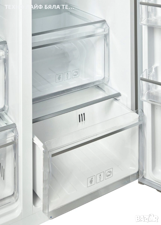 „GNO5322XPN 8996313200“ е свободностоящ хладилник тип „side-by-side“ от BEKO. С капацитет на фризера от 185 литра и капацитет на хладилника от 347 литра, моделът е с размери 90 x 177 x 66 см (Ш/В/Д). Работи с ниво на шум от 39 dB. Функцията No Frost предотвратява натрупването на лед, елиминирайки необходимостта от ръчно размразяване. Две чекмеджета на фризера и две чекмеджета за свежи храни осигуряват достатъчно място за съхранение на хранителни стоки. Точната температура вътре в хладилника се показва на външен екран. Четири стъклени рафта, три от които са с регулируема височина, предлагат много място за храна. Четири рафта на вратата осигуряват удобно и организирано съхранение. Функцията SuperFreeze позволява бързо охлаждане и замразяване на храната. LED вътрешното осветление осигурява отлична видимост на съдържанието. Всеки, който търси модел, който предлага достатъчно място за храна, ще направи добър избор с »GNO5322XPN 8996313200« от BEKO.