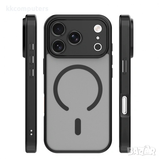 Тънък и стилен калъф, който осигурява надеждна защита и съвместимост с MagSafe аксесоари. Изработен от комбинация от гъвкав TPU и здрав поликарбонат, предлага устойчивост на удари и надраскване, като запазва лек и компактен профил с дебелина около 2 мм. Матовият полупрозрачен гръб е устойчив на отпечатъци, а подсилените ръбове и повдигнатите зони около камерата и дисплея осигуряват допълнителна защита. Вграденият магнитен пръстен с висока сила на захват гарантира стабилно закрепване към MagSafe зарядни и аксесоари. Съвместим модел: iPhone 17 Pro Max (6.9)