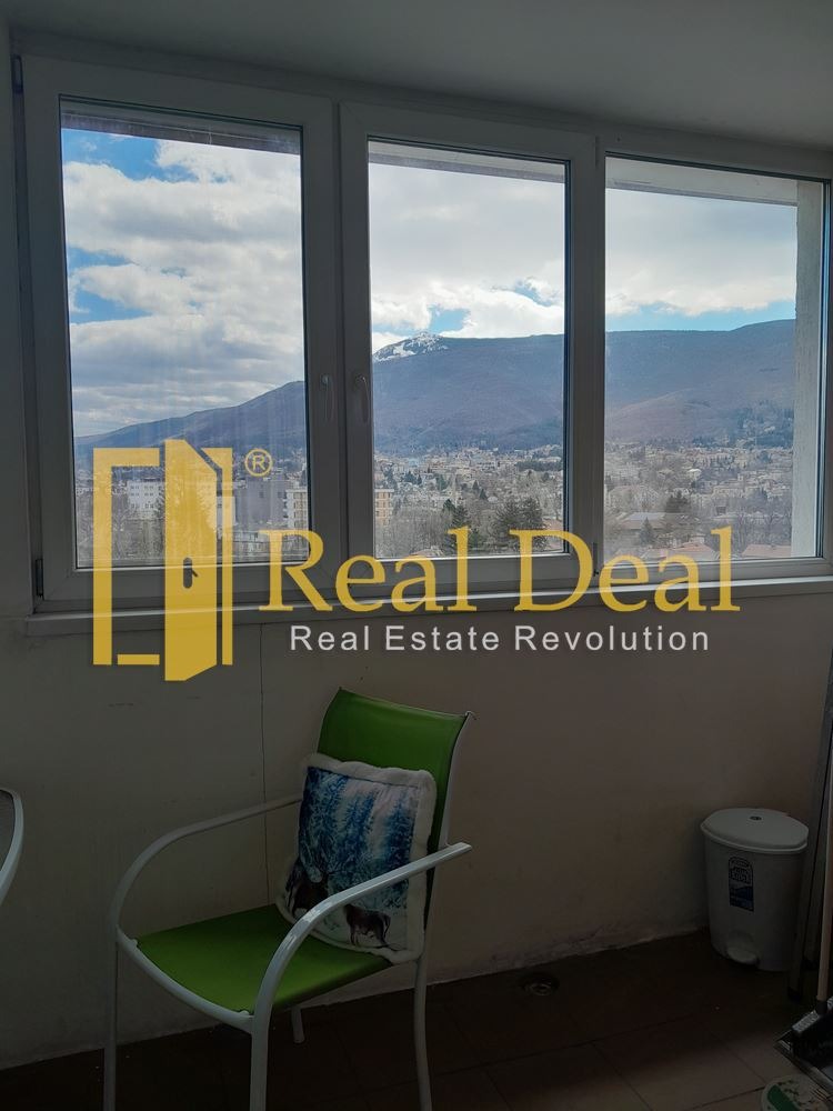 Имотът се намира на 7-ми етаж и впечатлява с изключително красива, панорамна гледка към Витоша, която се разкрива от огромна остъклена тераса перфектно място за отдих през всички сезони.