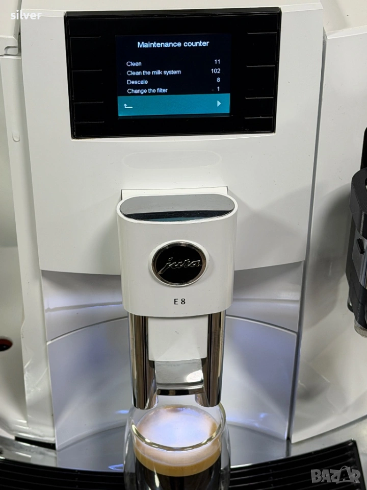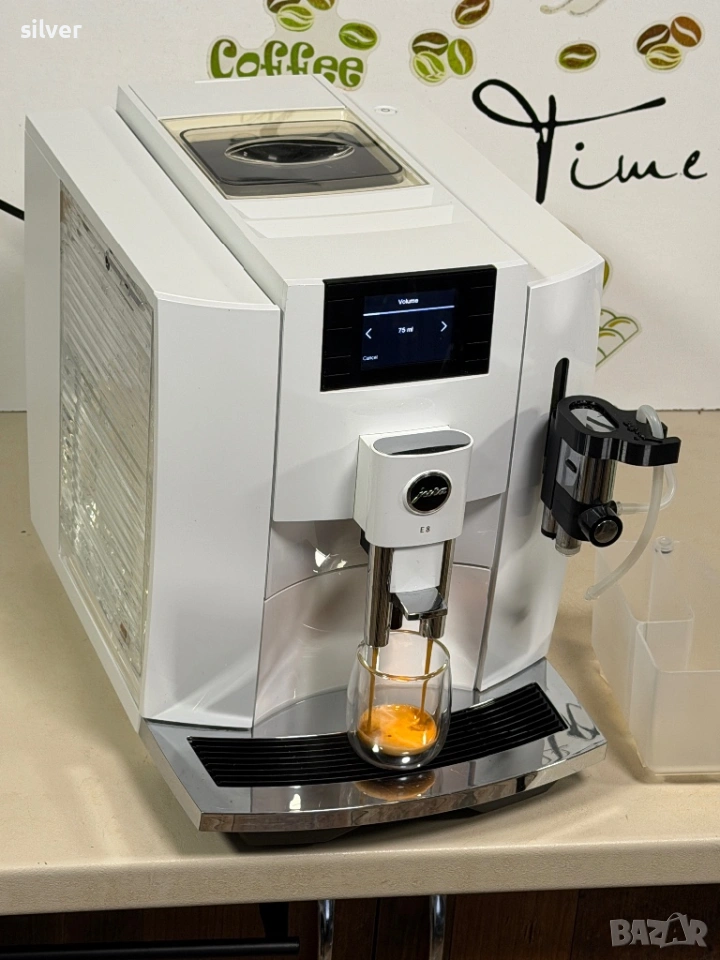 Визуалнто състояние се вижда на снимките работи отлично почистена смазана минала е профилактика готова за употреба. Работи с кафе на зърна и мляно кафе, приготвя страхотно кафе. Приготвя капучино Latte macchiato мляко и други напитки. Пътува с опция преглед и тест преди плащане. Гаранция 1 месец