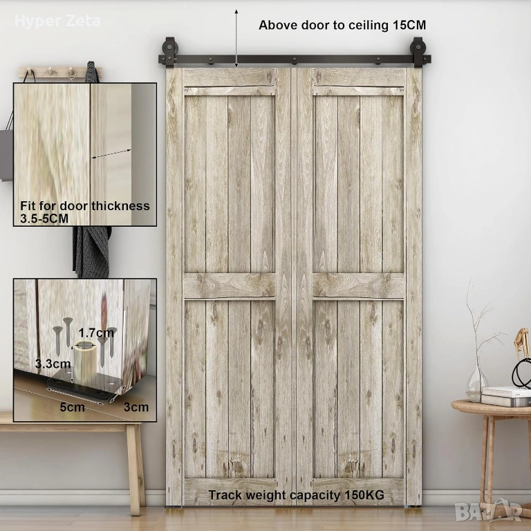 Релса за плъзгаща врата 76см комплект механизъм за 2 врати → Обява 54156403
