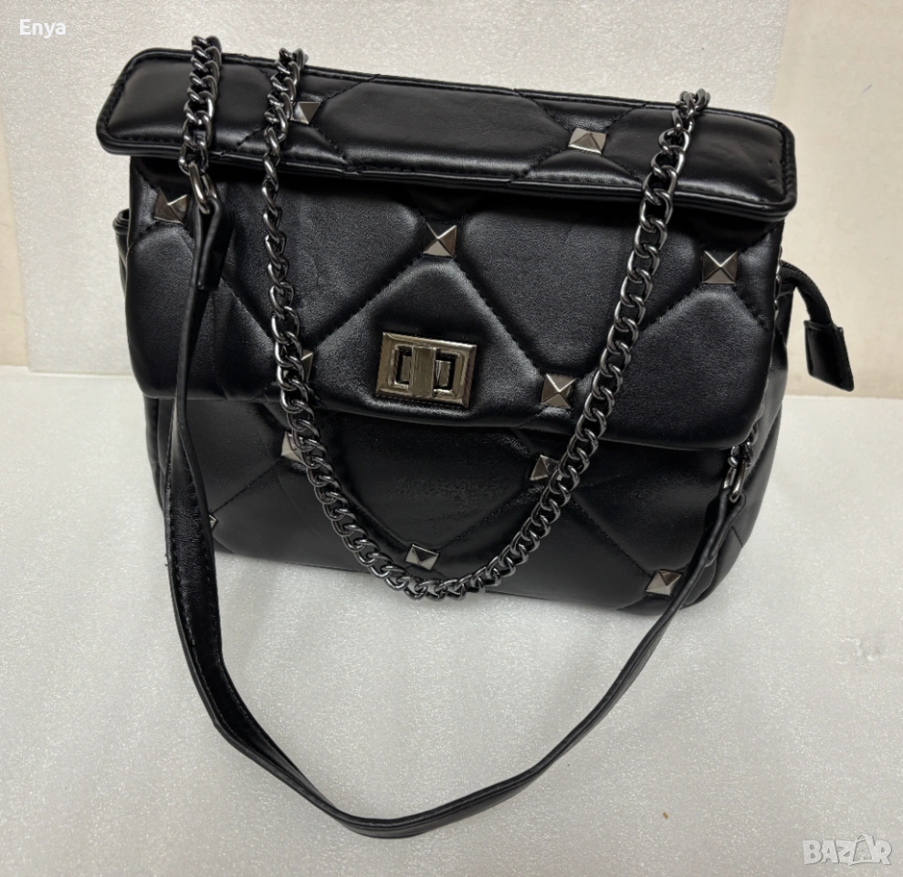 Дамска чанта - черна с капси → Обява 54156409