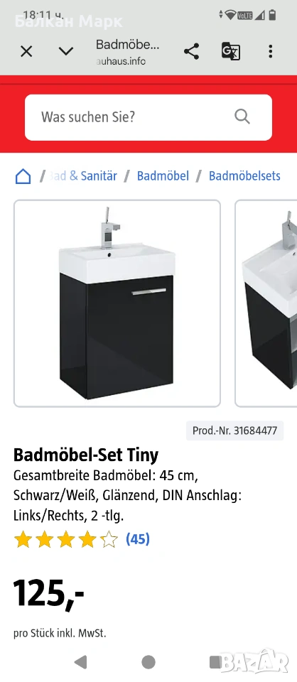 Модел: Waschplatz Tiny 45 (Anthrazit HG)