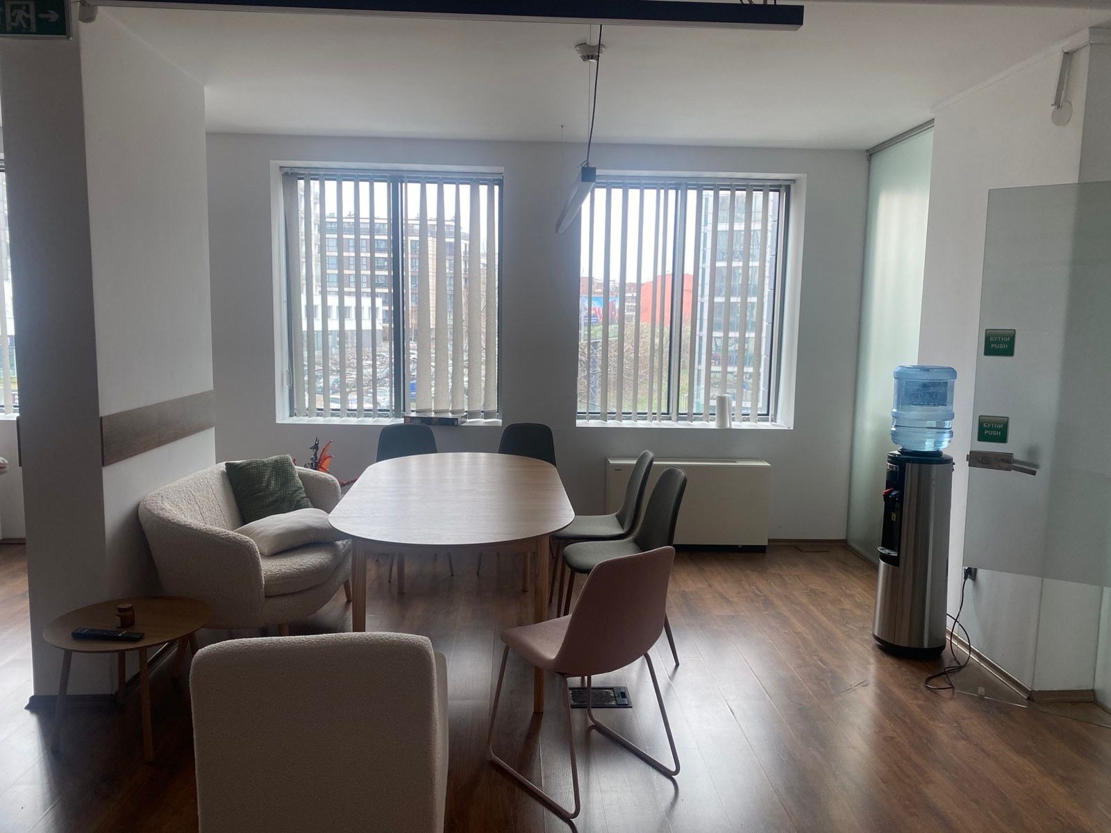 - Една заседателна зала, отделена чрез преграда от темперирано стъкло;