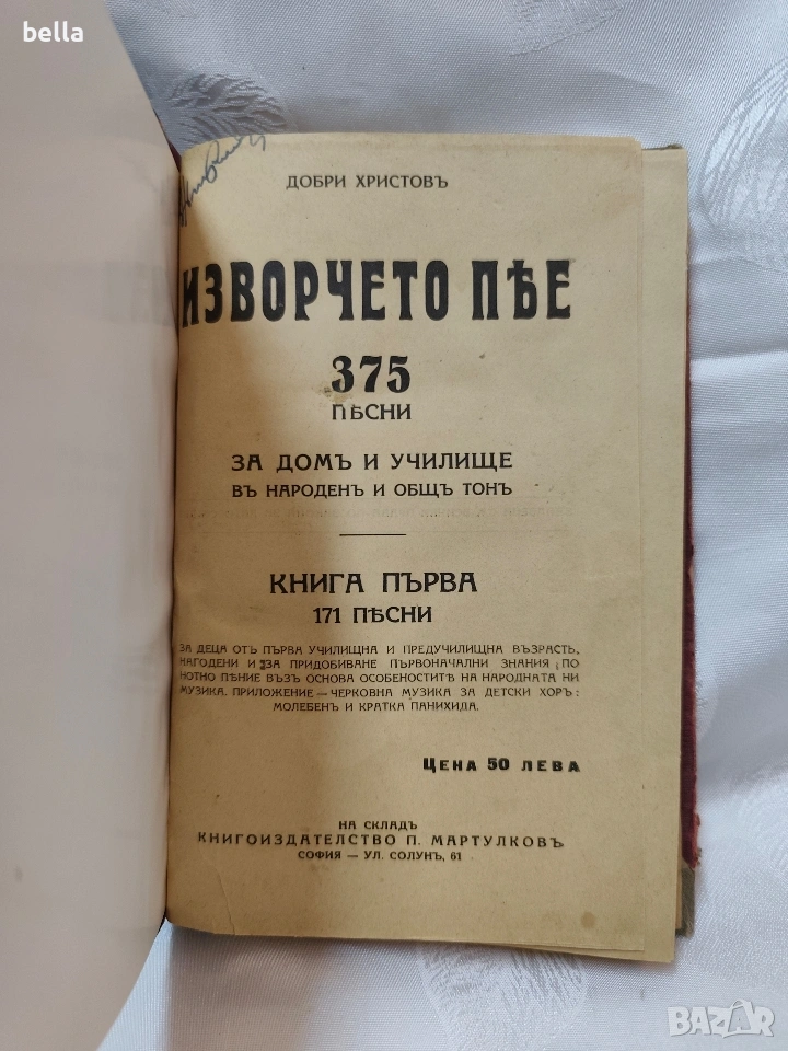 Антикварно издание -Изворчето пее -книга първа -375 песни за дома и училището,подшита отвътре така е закупена.Цена 75 евро
