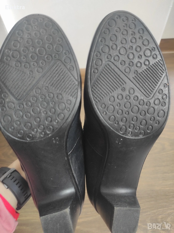 Дамски обувки, естествена кожа, с лепка. Номер 40, височина на тока в най-голямата част - 6 см. Нямат забележки.