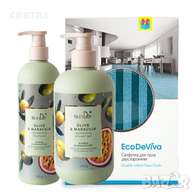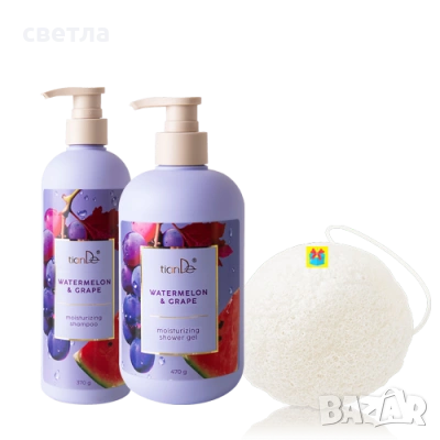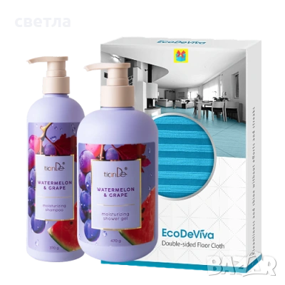 Шампоан +душ гел „Диня и грозде“- ПОДАРЪК Двустранна кърпа за под → Обява 54156760