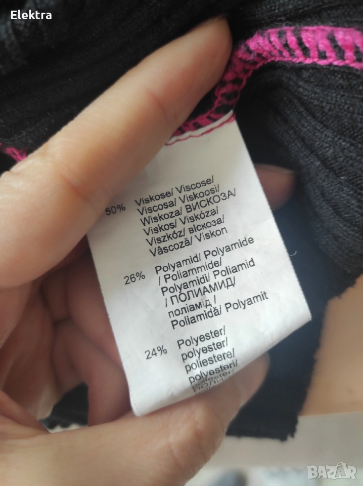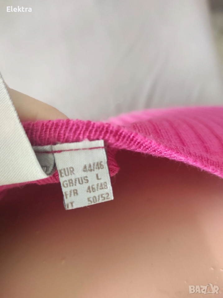 Рокля плетиво, подходяща за пролет/есен. Интересна комбинация между розов и черен цвят. Няма забележки. По етикет 44 номер, отговаря на Л/ХЛ. Етикетът е сниман.