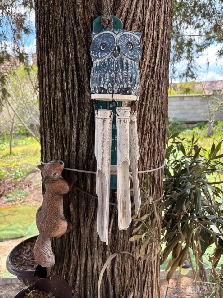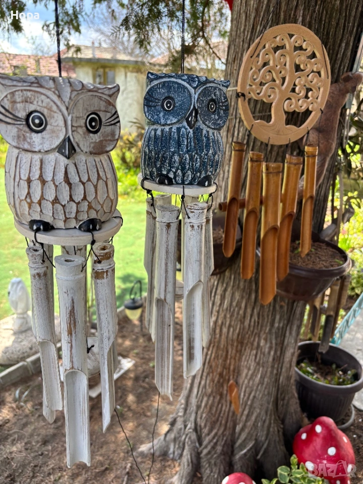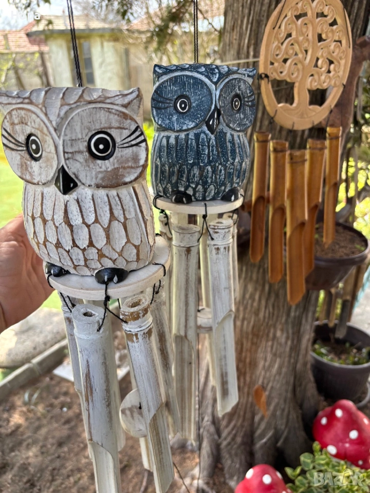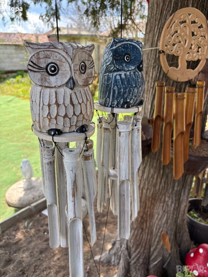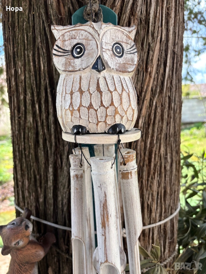 Вятърен звънец от дърво и бамбук Бухалче → Обява 54156937