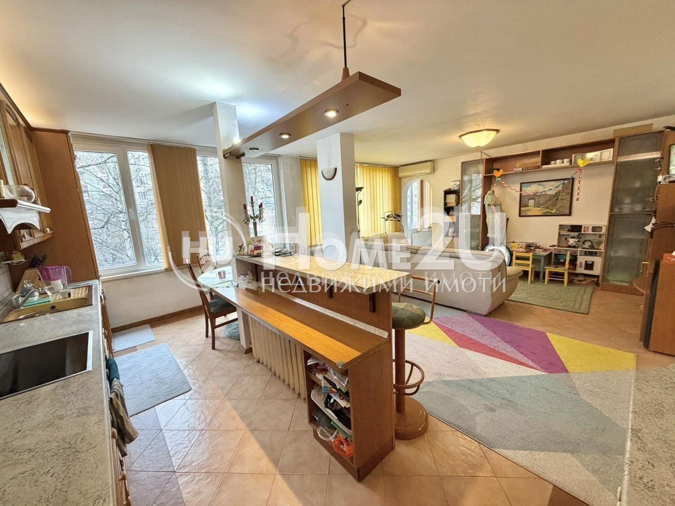 Хоум Ту Ю представя на Вашето внимание голям тристаен апартамент в един от най-предпочитаните и зелени квартали на София. Имотът се намира в малка тухлена сграда, разположена между два парка, с отлична локация и множество удобства детски градини, училища, верига магазини (Била, Лидл, Фантастико) разнообразен градски транспорт до всички точки на града, както и Метростанция на само 5 минути пешеходно разстояние.