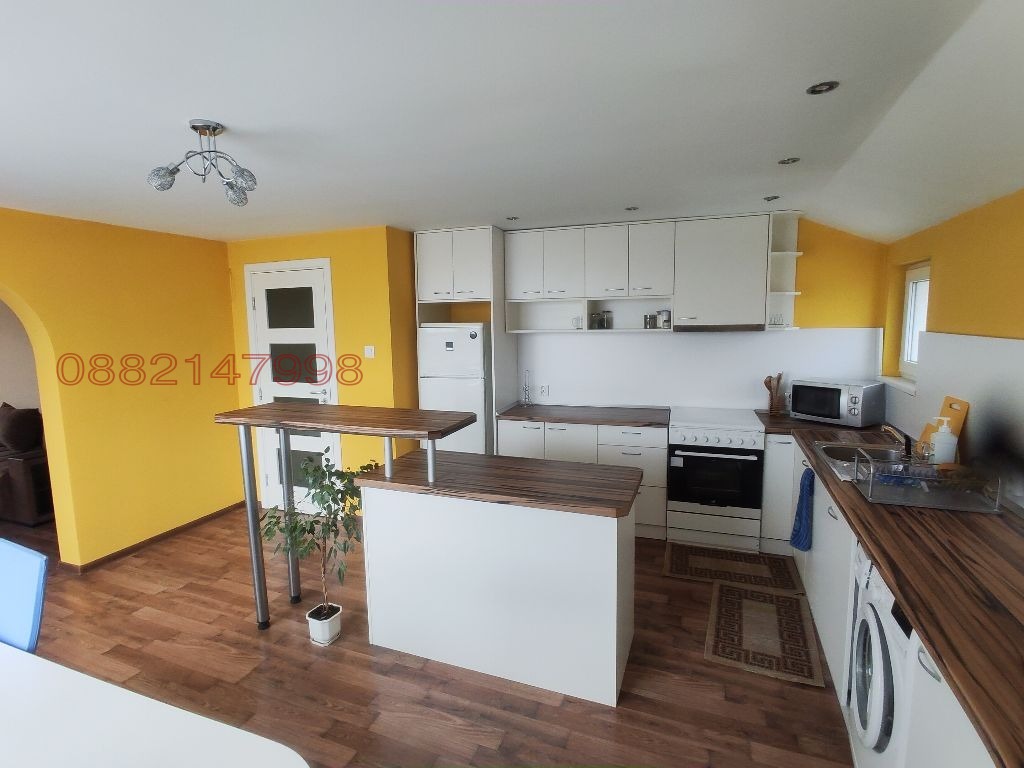 Предлагаме под наем светъл и уютен тристаен апартамент, представляващ самостоятелен етаж от къща, разположен в спокоен и комуникативен район, в близост до спирка на градски транспорт, училище и хранителен магазин. Жилището е напълно обзаведено с всичко необходимо за едно домакинство.