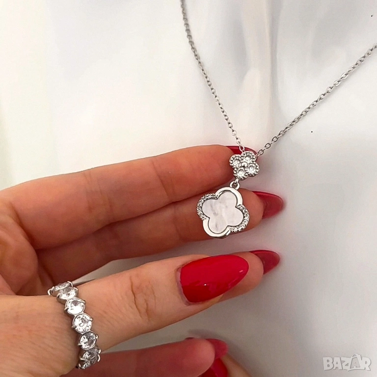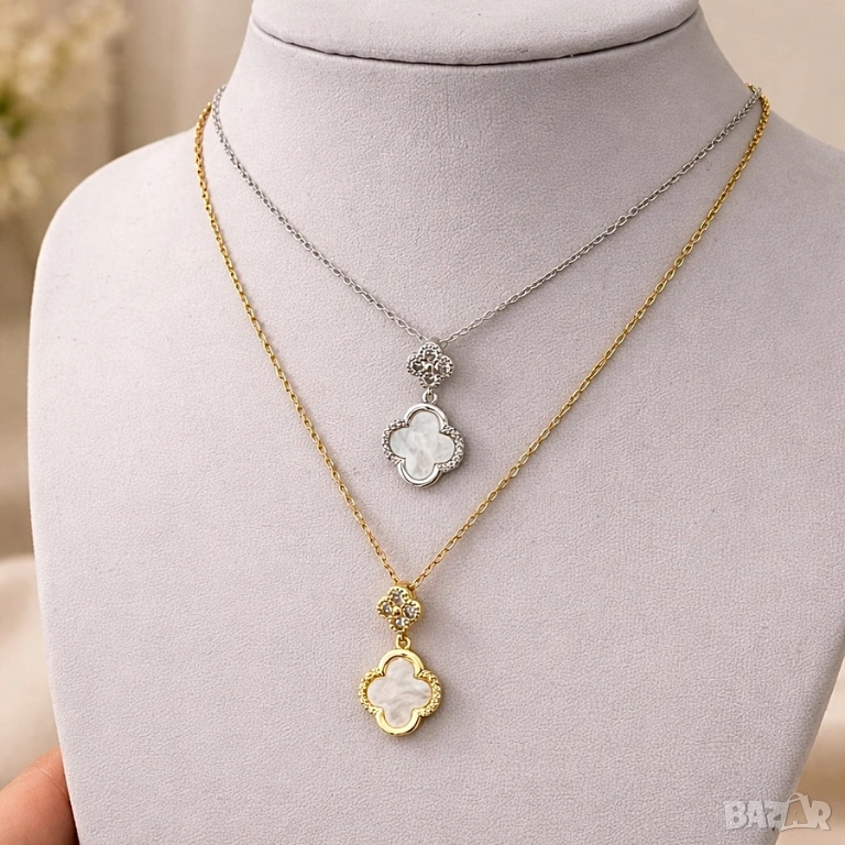 Колие със седефена детелина от медицинска стомана - златно и сребърно → Обява 54157124
