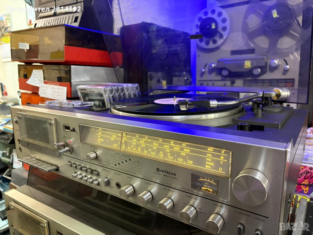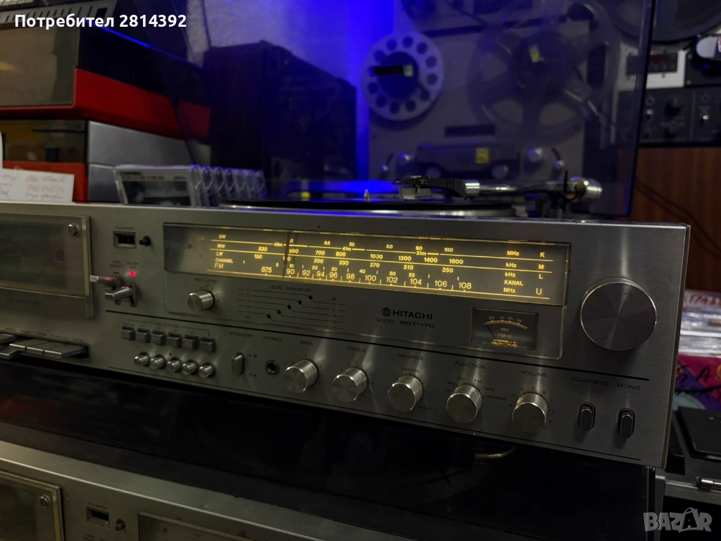 Грамофон HITACHI SDT-170 Hi-Fi stereo комбайн с касетен дек, усилвател и радио тунер. Грамофон - 20-20 000 Hz, автоматичен, рамо тип SME, антискейтинг и други екстри