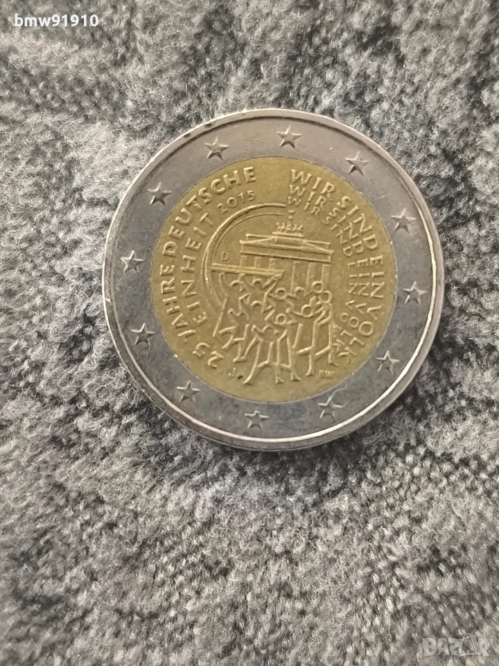 Това е немска възпоменателна монета от 2 евро, издадена през 2015 г. в чест на 25-годишнината от обединението на Германия. Дизайн: Изобразява хора пред Бранденбургската врата и надписа "WIR SIND EIN VOLK" (Ние сме един народ).