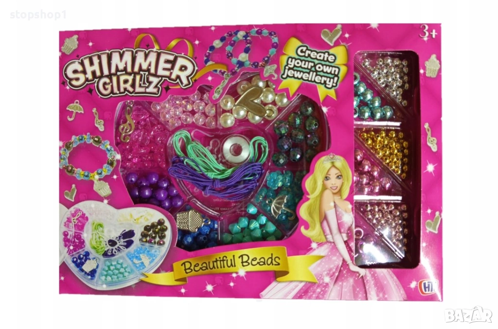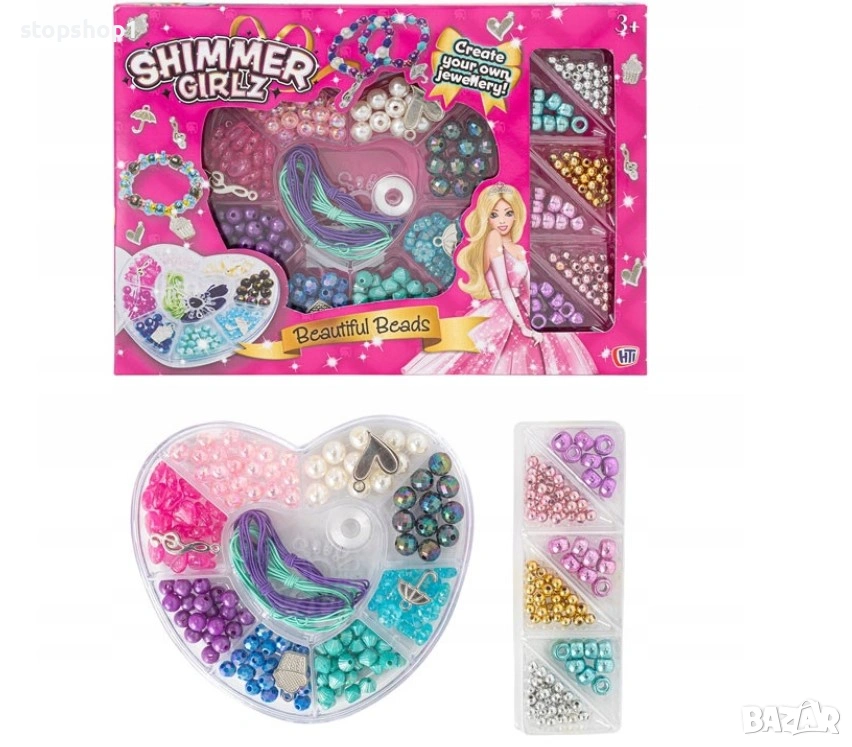 Създайте свои собствени уникални гривни и колиета! Този комплект е идеален за деца, които обичат творческата игра и изработването на собствени бижута.