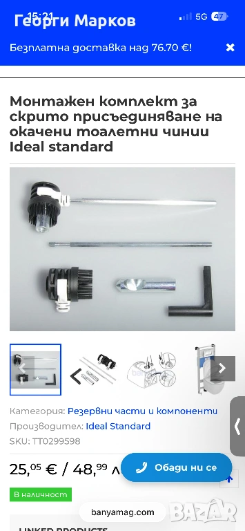 Монтажен комплект за скрито присъединяване на окачени тоалетни чинии Ideal standard. 14 евро. Чисто