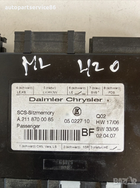 Блок за управление на седалка за Mercedes ML W164 420 CDI V8 (2007) A2118700085, снимка 1 - Части - 54157472 Блок за управление на седалка за Mercedes ML W164 420 CDI V8 (2007) A2118700085, снимка 2 - Части - 54157472 1/2