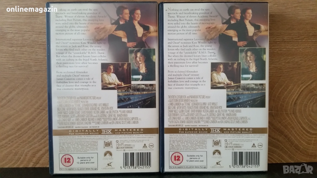 Продавам две оригинални видеокасети TITANIC на английски език . 1997 година . Времетраене 189 минути.Работят отлично . Като нови . Цена 5 евро за брой . Изпращам с Еконт, Спиди или лично предаване за град Бургас .