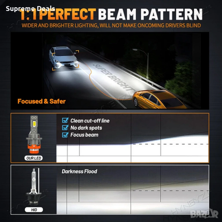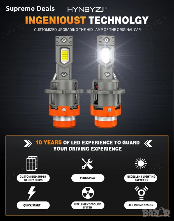 Размер: 1:1 с оригиналната ксенонова крушка, перфектно пасва