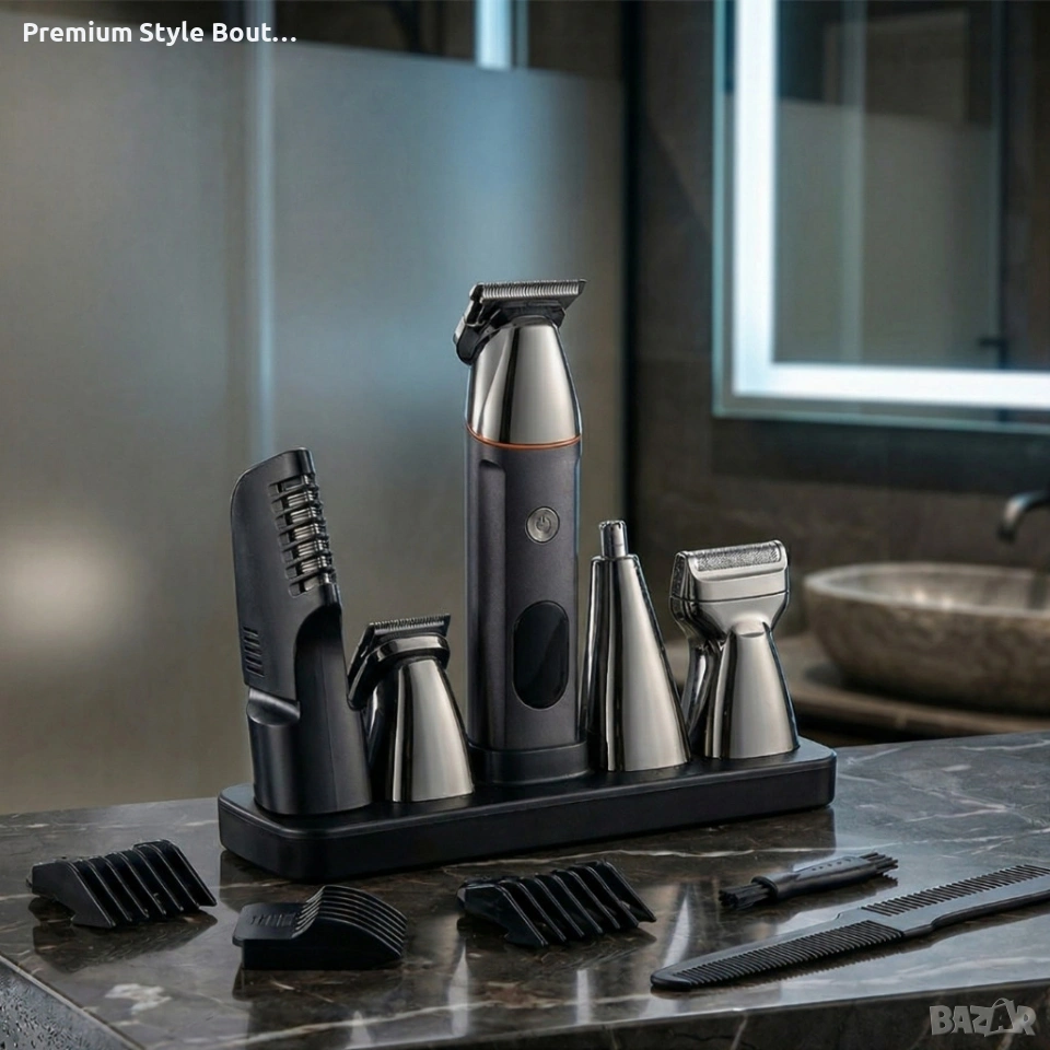 Професионален комплект за подстригване 5 в 1 – машинка, тример, бръсначка и приставки за лице и тяло