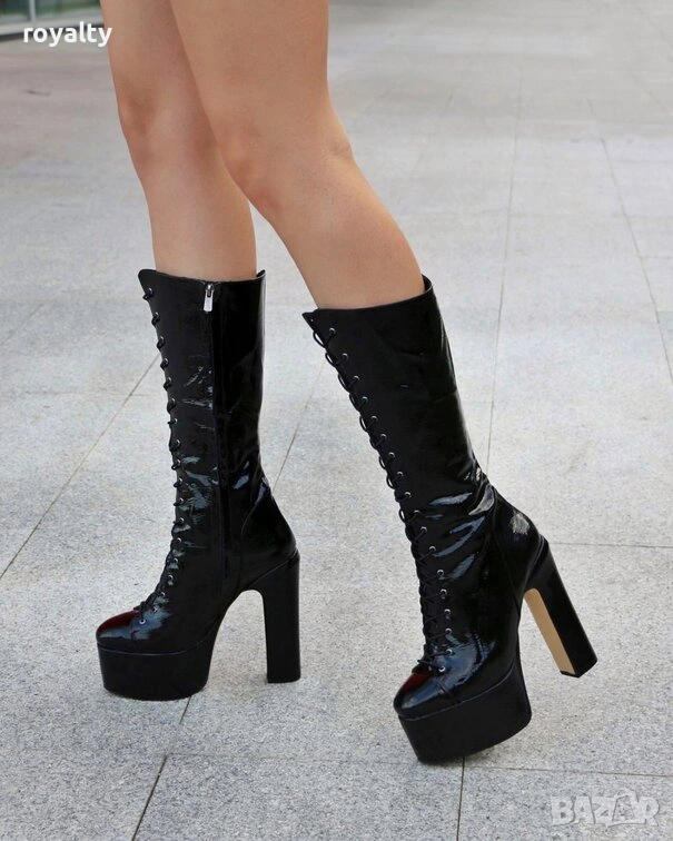 Ботуши на ток - черен лак [36-40 номер] → Обява 54157641