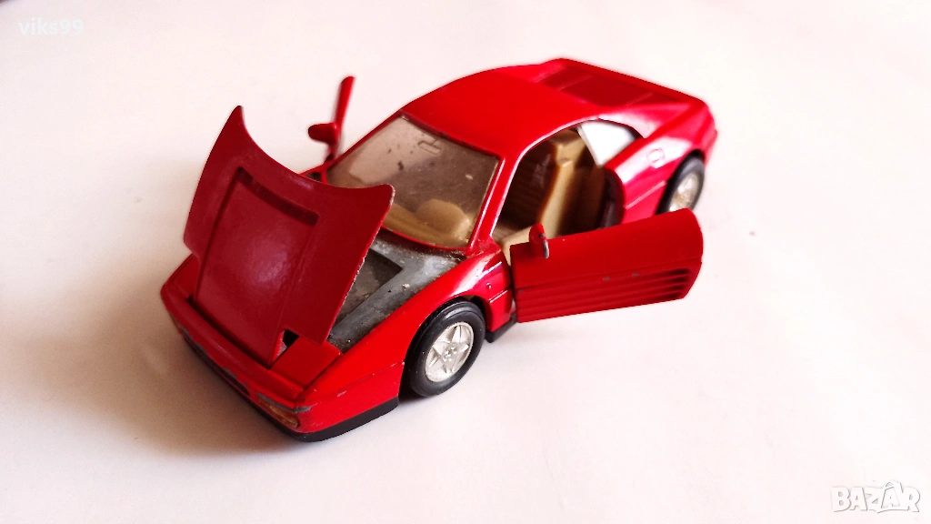Метална количка с отварящи се врати и капак Welly No 9043, Ferrari 348TB - Мащаб 1:43, състоянието е видно от снимките. Цената е без коментар. Всички мои пратки са с опции за преглед и тест преди плащане! Моля не предлагайте по-ниски оферти! МОЛЯ ВИЖТЕ И ДРУГИТЕ МИ ОБЯВИ.