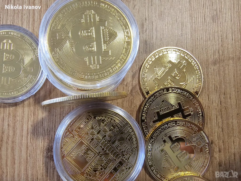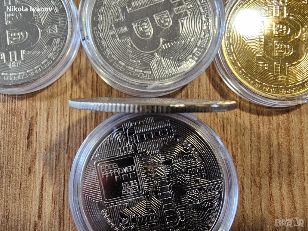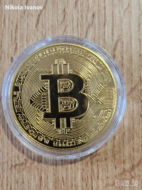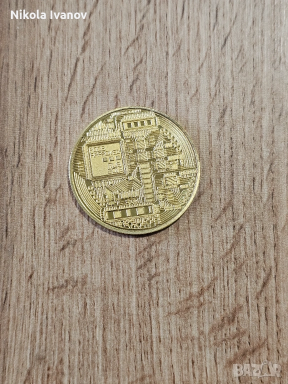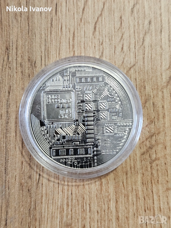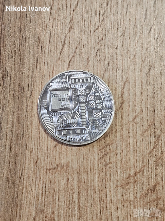 Дизайн: Лицевата страна изобразява символа на Биткойн, обграден от надписи "Digital Decentralized Peer to Peer". Гърбът показва сложна компютърна схема (motherboard design), символизираща технологията зад валутата.