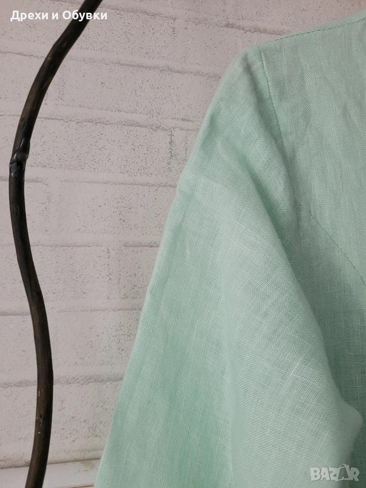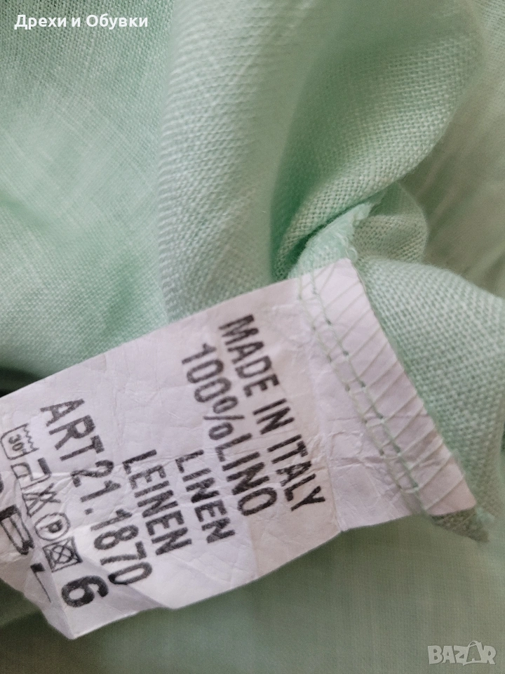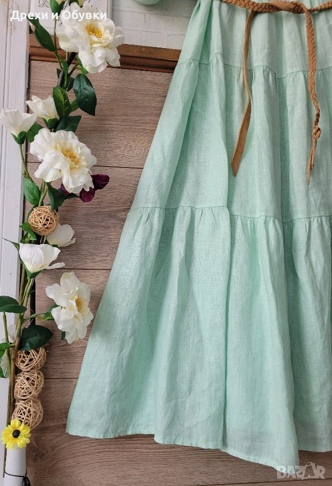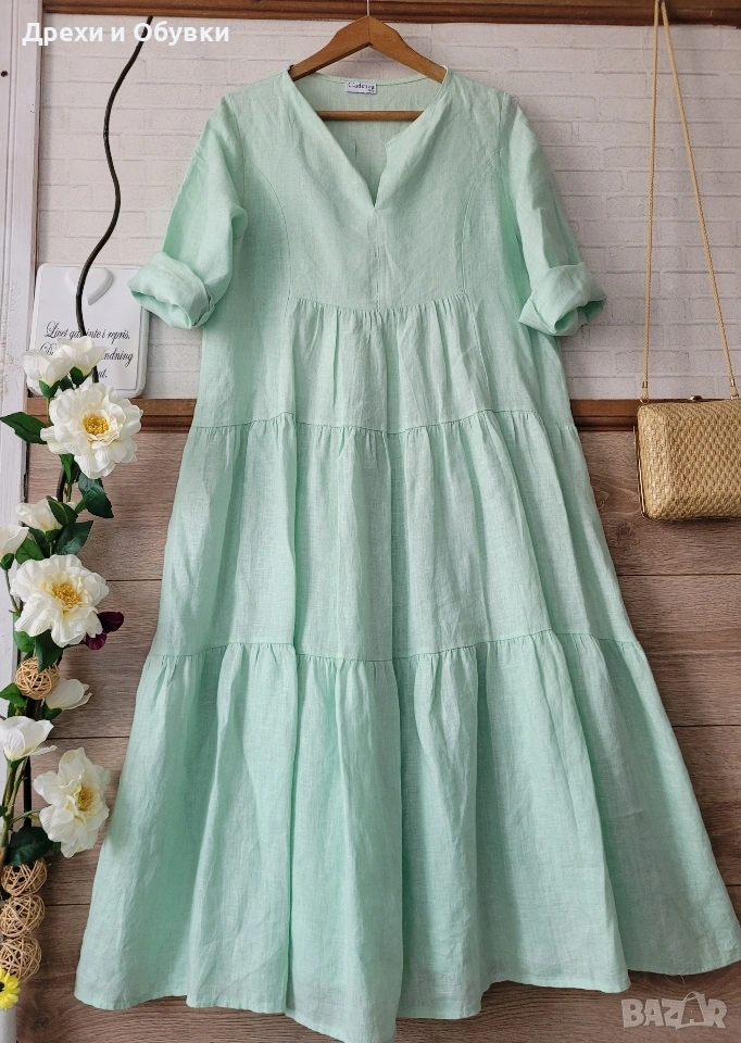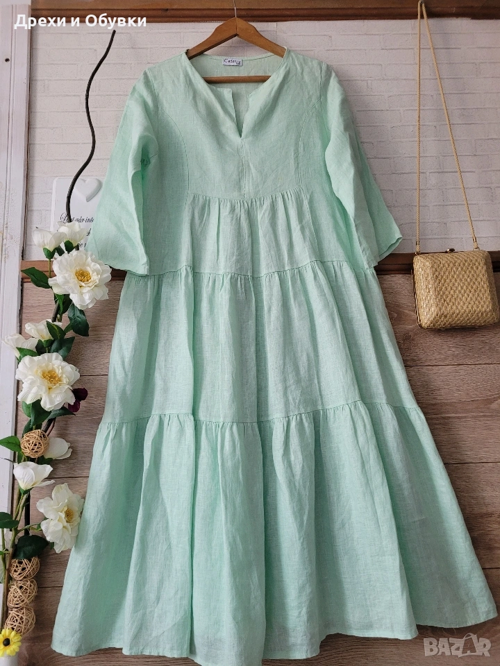 ленена рокля от Cadenza – съвършен баланс между комфорт, стил и италианско майсторство. Изработена от 100% висококачествен лен, роклята впечатлява с лекота и естествена текстура, която позволява на кожата да диша и осигурява усещане за прохлада дори в най-топлите дни. Нежният ментов нюанс придава свежест и финес, подчертавайки естествената женственост. V-образното деколте издължава линията на шията,. Меките набори в долната част създават красив обем и движение при всяка крачка. ✨ Произведена в Италия – символ на безкомпромисно качество и внимание към детайла ✨ 100% лен – естествена, дишаща и устойчива материя ✨ Универсален дизайн – подходящ както за ежедневие, така и за специални поводи Тази рокля е повече от дреха – тя е израз на стил, лекота и съвременна женственост с неподправен италиански почерк. Универсален размер Перфектна за М/Л Гръдна до 100см, дължина 106см Състоянив: не е носена Цена 60€