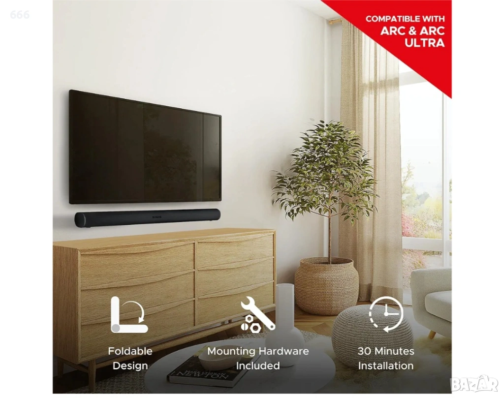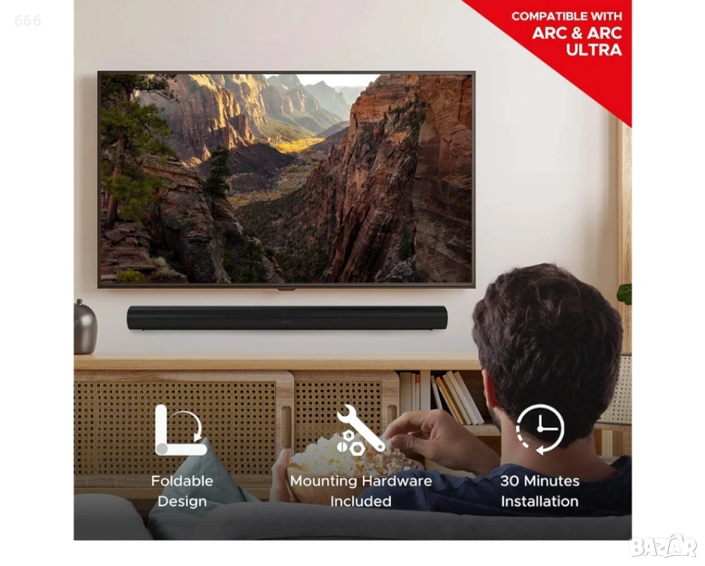 МОЛЯ, ОБЪРНЕТЕ ВНИМАНИЕ: SONOS SOUNDBAR НЕ Е ВКЛЮЧЕН.