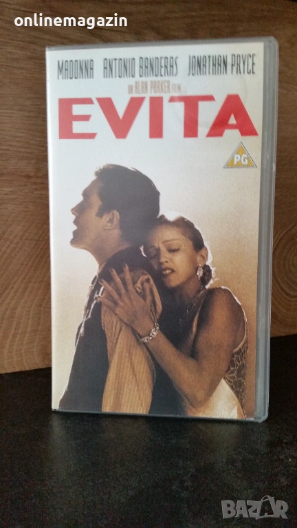 Продавам рядка видеокасета с участието на Мадона и Антонио Бандерас " EVITA " Като нова . Работи отлично. Изпращам с Еконт, Спиди или лично предаване.